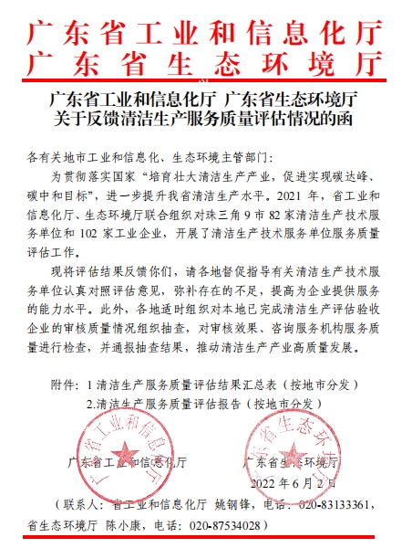 關(guān)于反饋清潔生產(chǎn)服務(wù)質(zhì)量評估情況的文件