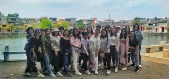 在南海松塘村,女職工們邊走邊看。松塘村文風鼎盛有“翰林村”之美譽,僅在明、清兩代,考取進士者五人,行伍出身而晉身府臺者一人,考中舉人以及獲頒優(yōu)貢者近二十人;至近代,又有革命先驅(qū)區(qū)夢覺等。大家或在鑊耳屋民居前駐足端詳,或小憩于村中古樹下講述著松塘村名人故居里的故事,在一磚一瓦間感受著自然古村落滲透的文化氣息。