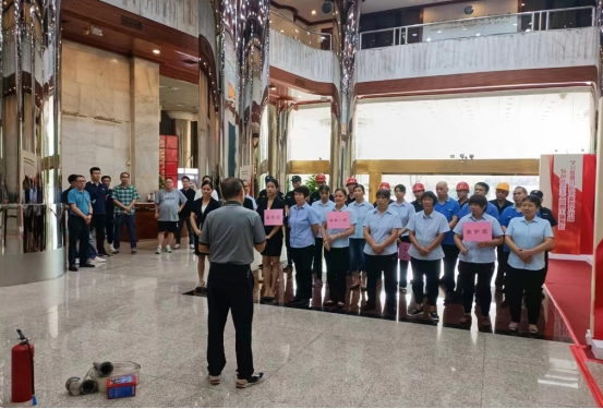 上午9點,消防應急救援隊伍迅速在季華大廈大堂集合。首先電建安委辦主任講解此次演練目的及演練方案,隨后演練總指揮開展火災撲滅、救援逃生及消防器材使用等相關知識培訓。為后面演練的順利展開打好理論基礎。