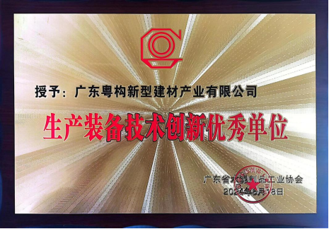 近日,廣東粵構(gòu)新型建材產(chǎn)業(yè)有限公司憑借在生產(chǎn)裝備技術(shù)工作方面的優(yōu)異表現(xiàn),榮獲廣東省水泥制品工業(yè)協(xié)會頒發(fā)的“生產(chǎn)裝備技術(shù)創(chuàng)新優(yōu)秀單位”。