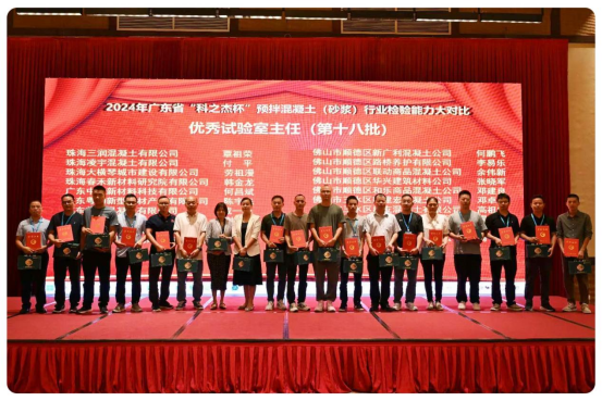 9月26日,粵構(gòu)公司參加了2024年廣東省“科之杰杯”預(yù)拌混凝土(砂漿)行業(yè)檢驗(yàn)?zāi)芰Υ髮?duì)比活動(dòng),經(jīng)過激烈角逐與嚴(yán)格評(píng)審,榮獲“全優(yōu)單位”稱號(hào),這一殊榮是對(duì)粵構(gòu)公司產(chǎn)品質(zhì)量的高度認(rèn)可,及其技術(shù)創(chuàng)新能力和專業(yè)檢驗(yàn)水平的有力證明。同時(shí),粵構(gòu)公司商砼試驗(yàn)室主任陳宇飛,憑借其卓越的專業(yè)技能與不懈的努力,獲得了“2024年廣東省預(yù)拌混凝土行業(yè)優(yōu)秀試驗(yàn)室主任”的榮譽(yù)稱號(hào),為公司贏得了又一份榮耀。